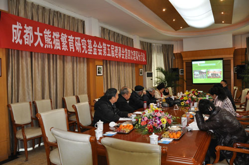 2011年1月14日,成都大熊猫繁育研究基金会第五届理事会第四次理事长会议在成都大熊猫繁育研究基地会议室召开。基金会名誉理事长、顾问、理事长、副理事长、秘书长以及基金会相关部门负责人出席了会议。