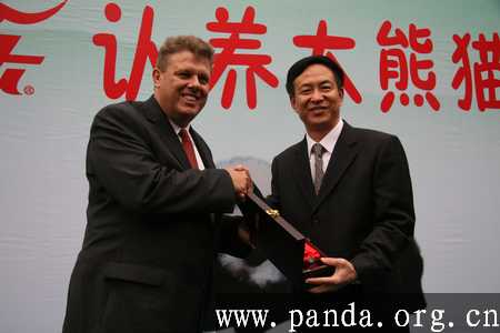 今天, 可口可乐大中华区宣布将与成都大熊猫繁育研究基金会和成都大熊猫繁育研究基地合作,终身认养该基地一对双胞胎熊猫。这不仅体现了可口可乐对于四川地震灾区持续的关注和投入,也是可口可乐继关注水资源管理、使用可持续性包装材料、能源管理和气候保护之后在环境保护领域的又一个积极实践。