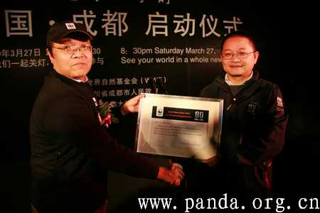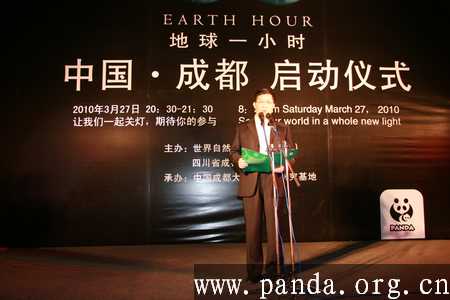 成都的启动仪式由世界自然基金会与成都市政府主办。在启动仪式上,成都市政府新闻办公室主任叶浪说,世界现代田园城市,必然是“自然之美、社会公正、城乡一体”的,是人与自然和谐相处、共同发展的。世界自然基金会及其“地球一小时”活动所倡导的低碳生活方式的理念,与成都建设低碳城市的行动以及建设“世界现代田园城市”的城市愿景高度契合。所以,成都今年率先行动,在中国城市中第一个以政府名义响应世界自然基金会的号召,加入了“地球一小时”。在成都熊猫基地举行这个启动仪式,放飞24盏孔明灯,一个重要的寓意就是:每一府城市、每一个市民,每天24小时都可以随时随地践行低碳城市、低碳生活的理念。大家放飞孔明灯,也放飞成都建设低碳城市和建设世界现代田园城市的城市梦想。