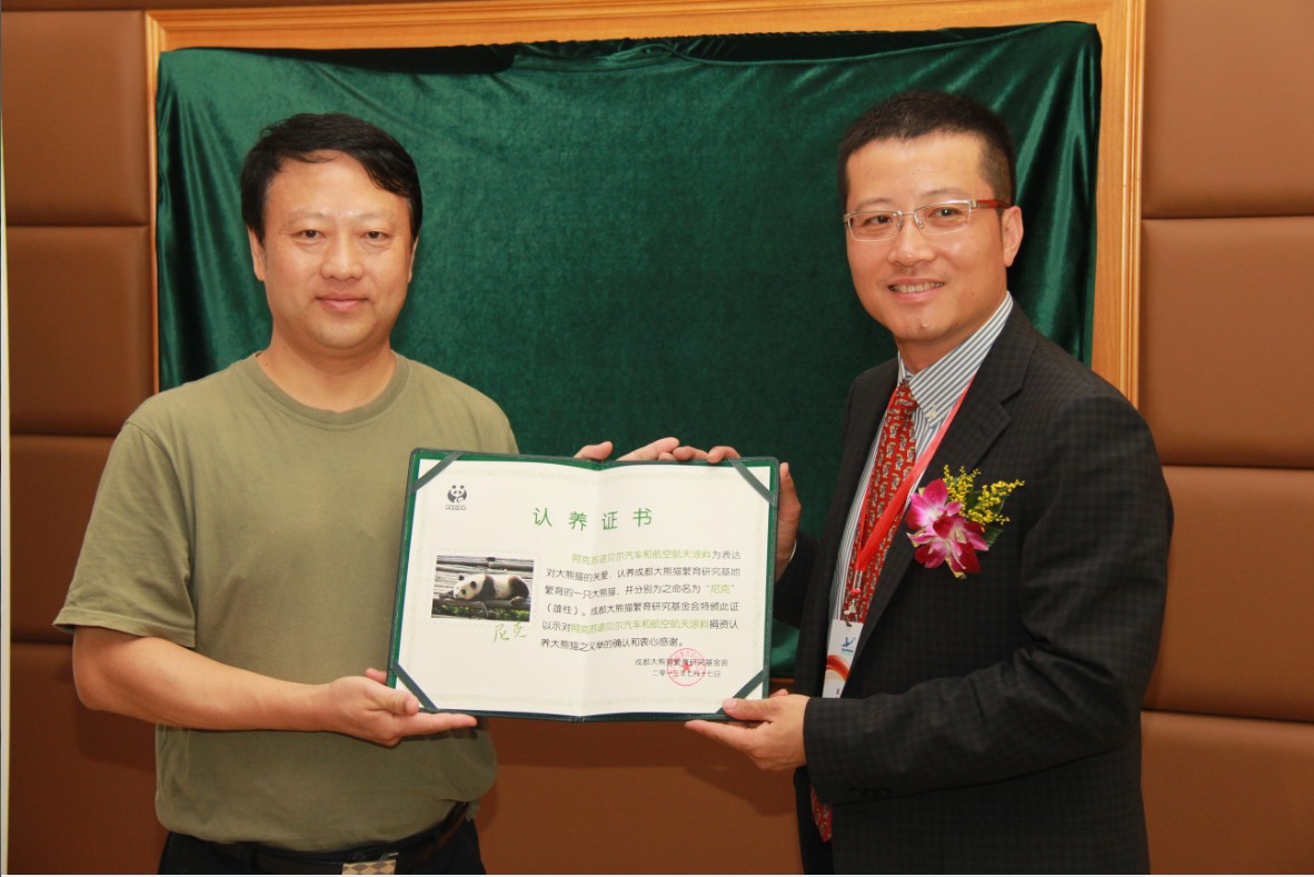 认养仪式上,成都大熊猫繁育研究基地副书记谭洪明先生代表基金会对阿克苏诺贝尔公司为大熊猫等濒危珍稀动物保护事业做出的贡献表达了衷心感谢。