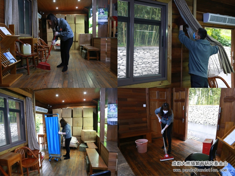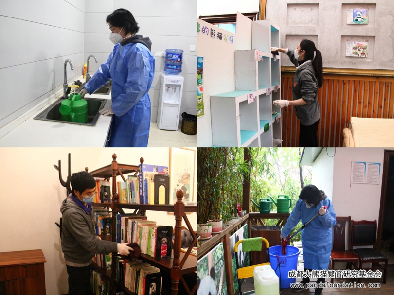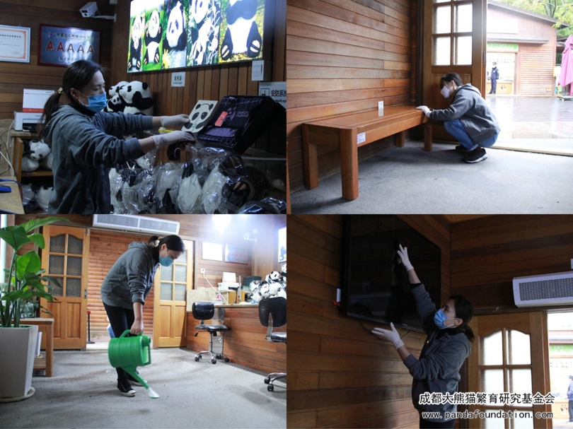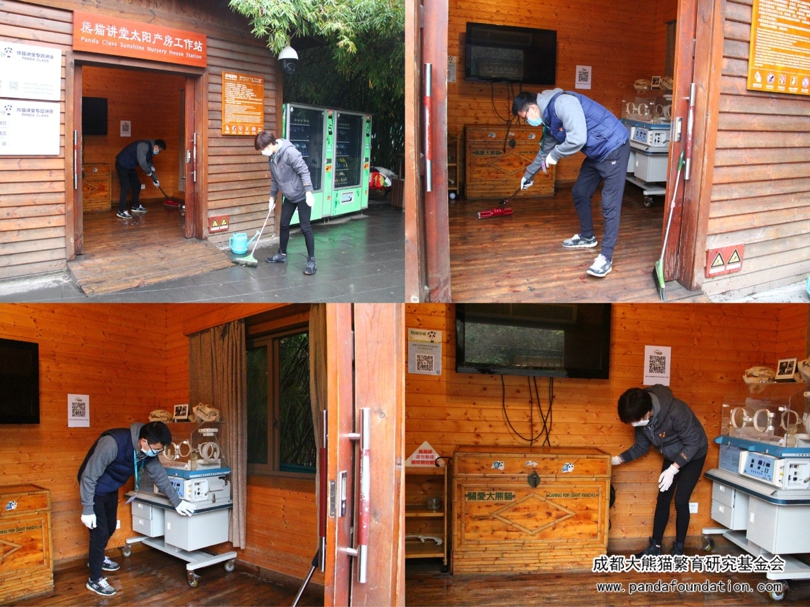 为避免人员聚集,此次活动采取分区域推进,将全体人员划分为四组,分别去往太阳产房工作站、月亮产房工作站、一号别墅工作站、科普教室及熊猫画廊进行清扫和消毒。