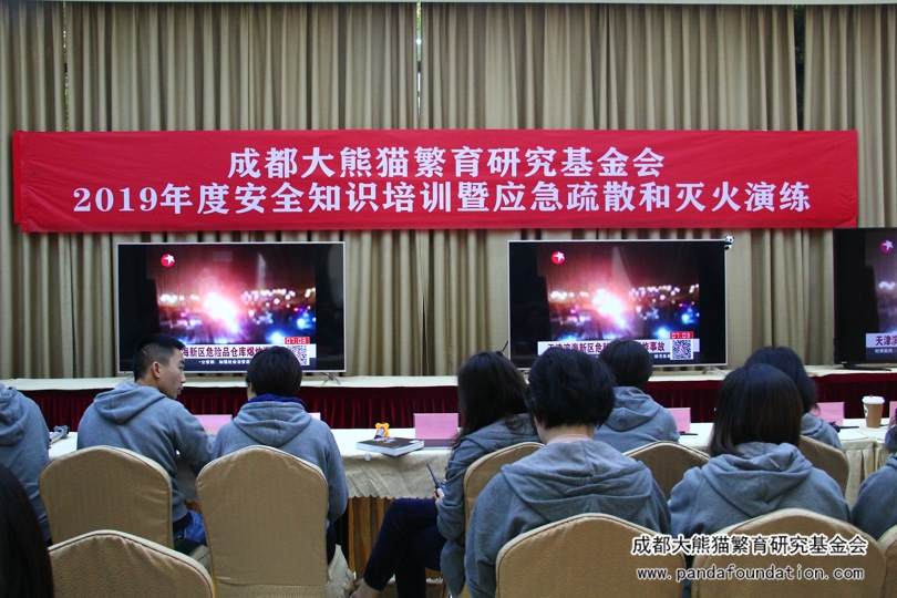 为进一步落实《中华人民共和国安全生产法》、《中华人民共和国消防法》、《机关、团体、企业、事业单位消防安全管理规定》等法律法规和《成都大熊猫繁育研究基金会安全管理制度》,增强我会应急反应和处置能力,提高员工安全防范意识,2019年10月29日下午,我会全体员工在科普教室开展了一次安全知识培训暨应急疏散和灭火演练。