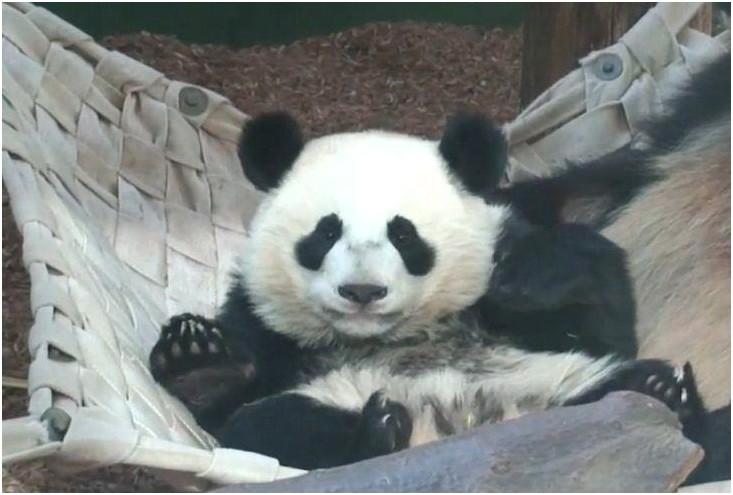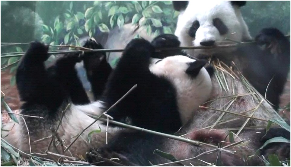 目前为止,阿宝的断奶计划进行的非常成功。他在断奶过程中的行为也和他的哥哥们一样,如出一辙。一天大部分时间里,只要有新鲜的竹子和饼干,阿宝都表现得非常好。他有很多玩具陪伴着他,但是就是再好玩的玩具,他也是玩一下就不玩了。他的妈妈不在身边还挺习惯的。但是下午工作人员把阿宝送回去她身边的时候,她也表现得很热络。这几天,在和妈妈重聚的时间里,阿宝会撒娇地嗷嗷叫。有时候他会要求妈妈来照顾他,有时候又会叫妈妈陪他耍。今天,当工作人员把阿宝送回给妈妈身边的时候,他显得很舒适,在妈妈的旁边吃得香,也睡得香。