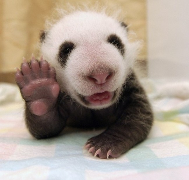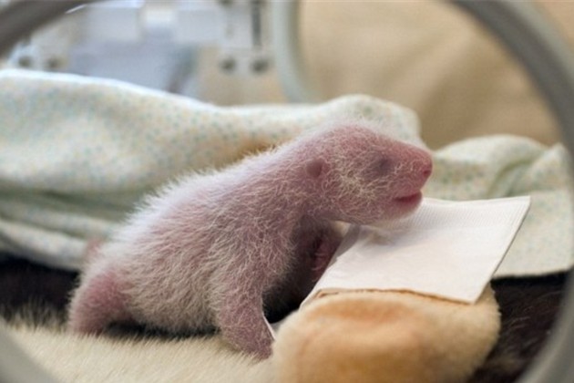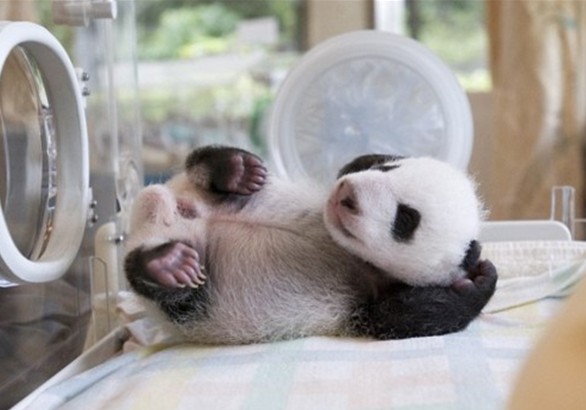 据报道,通过其中一张照片,我们可以看到出生仅37天的熊猫宝宝在接受饲养人员的检查后,准备返回保温箱前,对着镜头招手,其样子憨态可掬,惹人怜爱。另一张照片中,一只熊猫宝宝在自己的保温箱内,双手放到头后,肚皮朝天,呈休息状。另外一张照片中,一只刚刚出生几个小时的熊猫幼仔,被熊猫妈妈小心翼翼地含在口中。