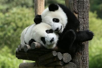 饱餐后的“娜娜”并不闲着。或在草地上奔跑,一不小心就摔了个四仰八叉;或如履平地爬上独木桥,在上面大胆地走来走去;或拿着被咬光竹叶的竹子,在草地里为它铺设的木径上打滚嬉戏……“娜娜,你又发疯嗦?”大熊猫饲养员廖友平大声的嗔怪,并没有让“娜娜”停止它在游客面前“炫耀”,反而爬上一株光秃秃的小树。突然“啪”地一声,一根树枝承受不住“娜娜”的体重,竟然被拉断了。