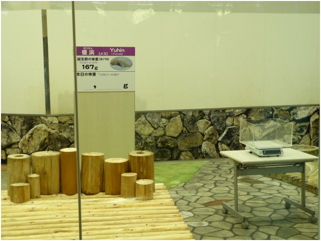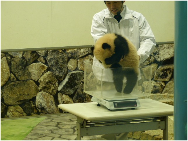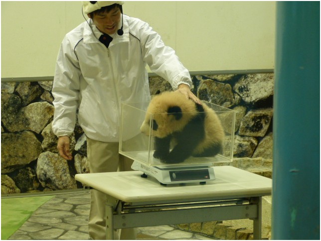 日本和歌山县白浜野生动物园给2012新生儿“优浜”称体重