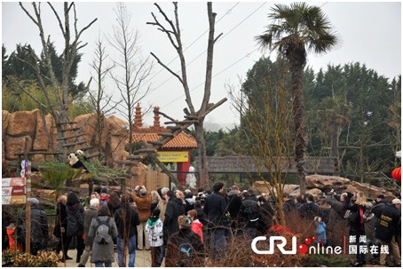 据动物园统计,开园后短短几个小时里,已有上百名游客争相目睹了两只可爱的中国大熊猫。中法大熊猫繁育合作计划将持续十年,两只憨态可掬的大熊猫将受到更多法国人的喜爱。