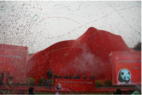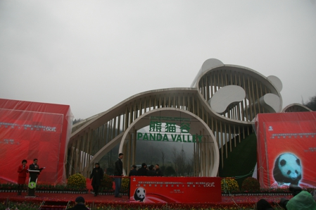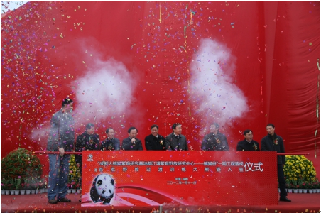2012年1月11日上午10点,成都大熊猫繁育研究基金会都江堰野放中心项目----“成都大熊猫繁育研究基地都江堰繁育野放研究中心—熊猫谷”一期工程落成暨首批野放过渡训练大熊猫入驻仪式在都江堰野放中心隆重举行。6只大熊猫作为成都首批野化过渡研究个体,率先回归它们的祖先曾经走出来的那片山野—都江堰玉堂镇马家沟,踏上了全球最大圈养大熊猫人工繁育种群的回家之路。
