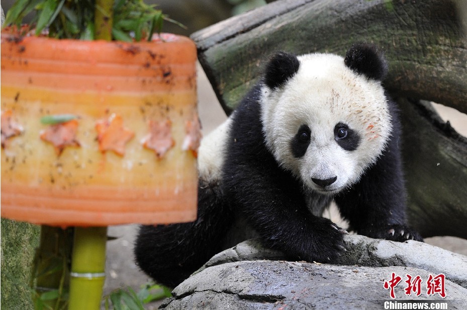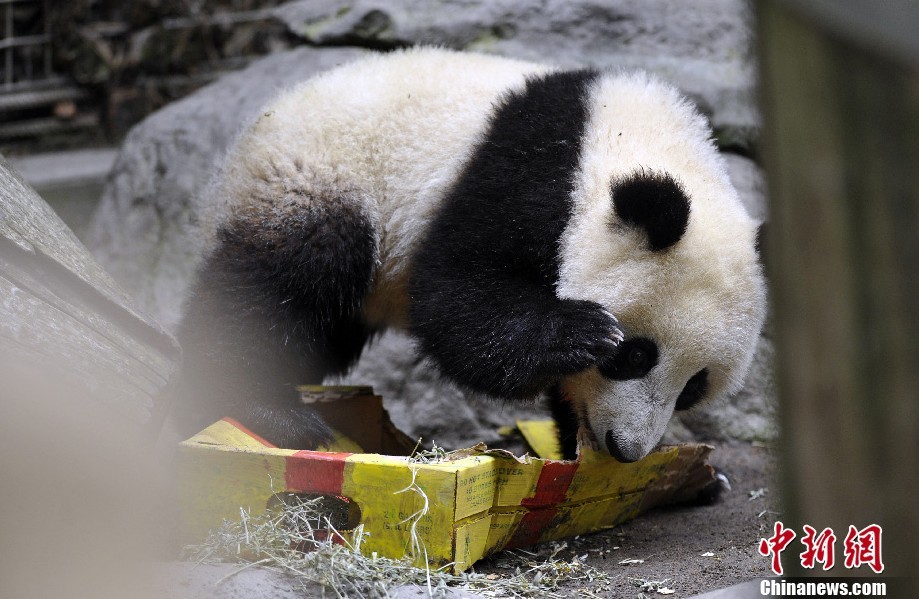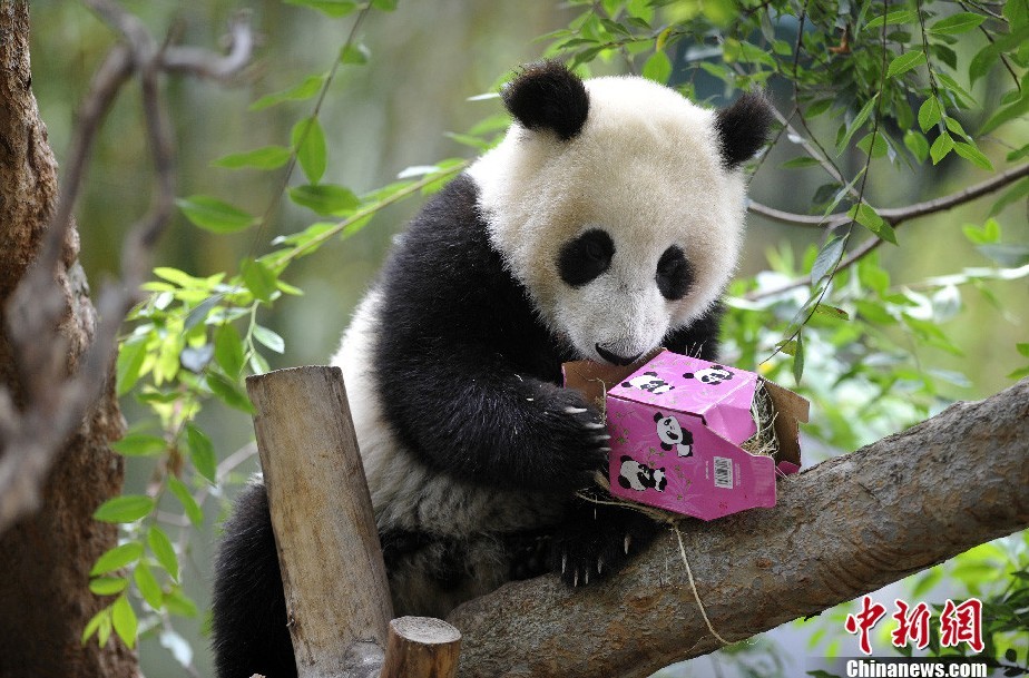 大熊猫美国圣地亚哥动物园庆生 呆萌可爱惹人怜