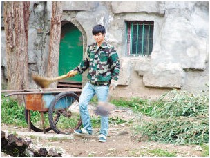 何鑫给坪坪清理圈舍