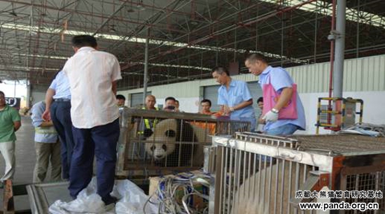 二〇一三年七月二十七日上午7时15分,搭载大熊猫“文莉”、“雅莉”的班机在广州白云机场平稳降落。此时,广州动物园的工作人员以及运输车辆早已在机场货运部恭候多时,而负责运送“国宝”的专车也已提前进行了清理和消毒处理。上午11时,专车抵达广州动物园,“文莉”“雅莉”正式开始了她们在广州为期一年的旅居生活。