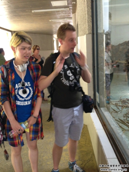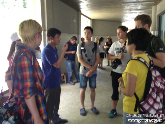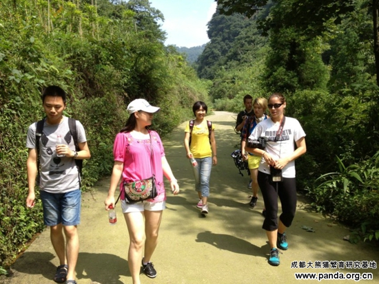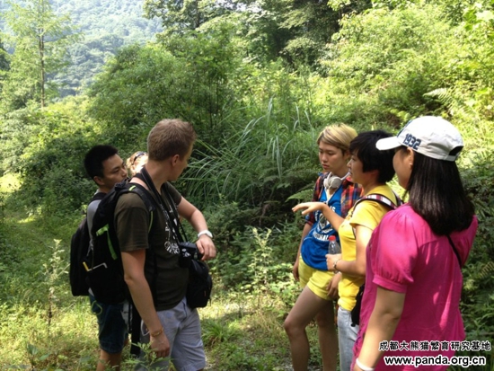 2012年全球大熊猫守护使选拔活动在成都举行,在数万人中来自法国的Jerome、中国上海的李寅蓉、美国的Melissa三位脱颖而出成为2012届大熊猫守护使。此次三位熊猫守护使会在成都大熊猫繁育研究基地参加为期一个月的深度学习活动,结束学习活动后他们将带着这些知识走访全球有熊猫的12个国家。现在他们来到了熊猫谷,探访正在接受野化培训的大熊猫,并了解熊猫谷发展建设等情况。