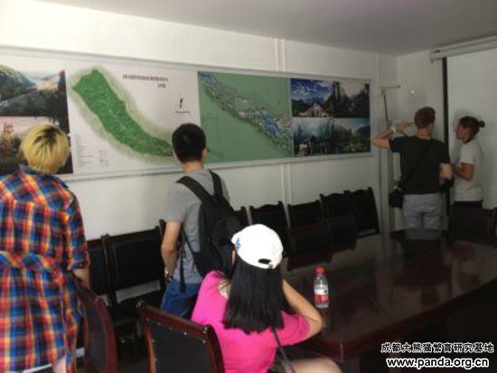 野放中心管理办公室安排专人接待大熊猫守护使,并给他们详细介绍了大熊猫饲养驯化、熊猫谷一期建设和二期修建项目等内容。工作人员介绍完熊猫谷情况后,给三位守护使出了两道难题:第一,让他们用自己的相机和笔记录熊猫谷动植物生物多样性,最后比赛哪位寻找数量最多;第二,听取未来二期修建项目后,提出自己的意见和建议,并对未来熊猫谷修建哪些施舍设备更利于熊猫野化放归说出自己的看法。