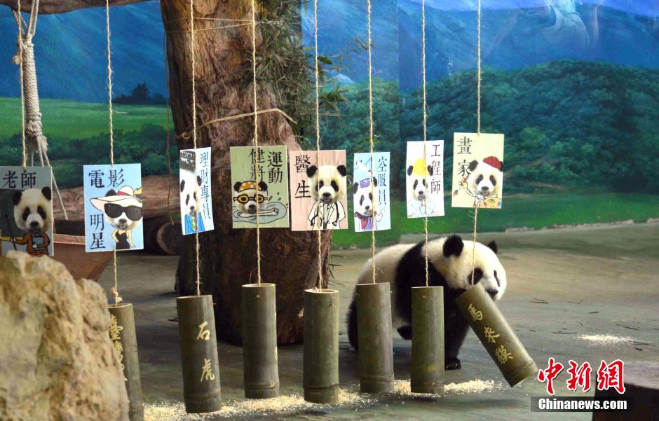 7月6日,台北市立动物园的大熊猫“圆仔”迎来一周岁生日,“圆仔”参加抓周活动。当天,园方举办了公益路跑、抓周、吃蛋糕等多项活动,为“圆仔”庆生。中新社发 陈小愿 摄