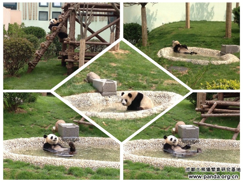 蜀云和贝贝来青岛已经一个月了,从刚开始来的时候的紧张不安,到后来的好奇警惕,再到现在的逍遥自在,他们一步一步适应着青岛的生活。就我看来,现在的他们都不能说是很好的适应了青岛,简直就是爱上了这里。青岛动物园为了让他们很好地适应,这一个月来都没有对外展出,而且竹笋竹子水果充足,这对于他们来说,俨然一世外桃源,远离人世纷扰。每天就吃吃喝喝,晒晒太阳,泡泡澡。