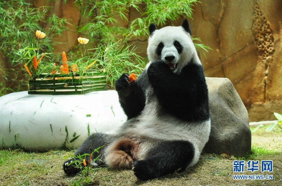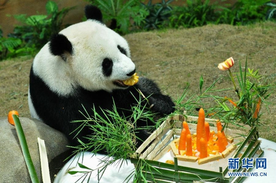 马来西亚动物园为大熊猫“兴兴”与“靓靓”庆生