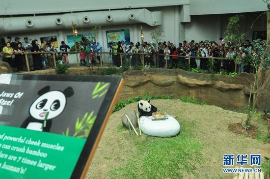 马来西亚动物园为中国租借给马来西亚的大熊猫“兴兴”与“靓靓”庆祝8岁生日。众多同在当天过生日的市民也受邀参加了这次庆生会。
