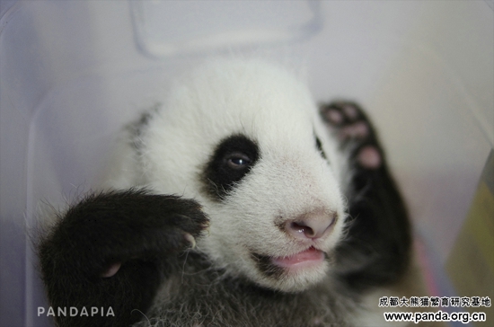 随着日龄的不断增长,兄妹俩越来越显现出了“体育名门”的优良基因。目前,毛哥的体重达1817g,毛妹的体重达1704g,兄妹俩的爬动技术都是“2014级熊猫幼稚园”里的佼佼者,也是名符其实的优等生。特别是每当它们吃饱了母奶后,总是喜欢摇头晃脑地高声哼哼着,精气神十足,似乎在告诉每一位关心与爱护它们的熊猫粉丝们:“亲爱的熊猫粉丝们,我们现在已经是45日龄的熊猫宝宝了哦,快来‘认领’我们吧!”
