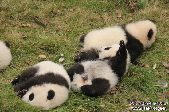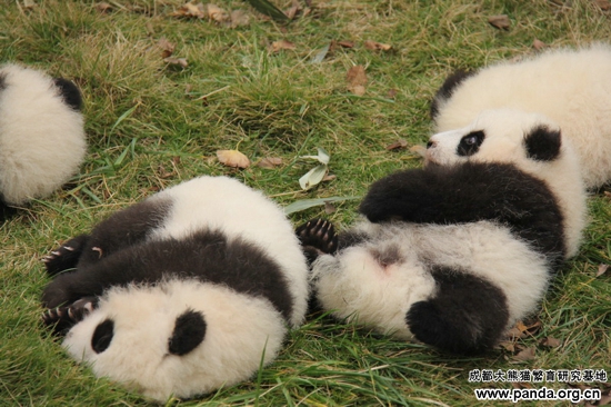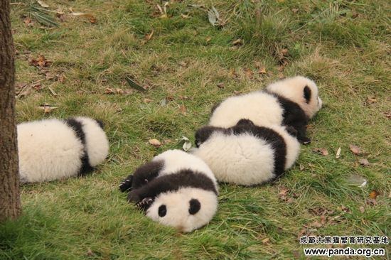 秋凉了,熊猫宝宝们也集体出游,享受懒洋洋的午后时光……