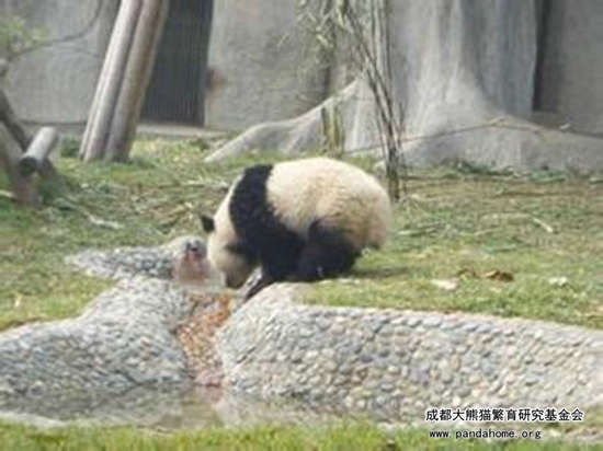 在许多大熊猫活动场地都有像这样大小的两个水池,小的就是他们喝水用的,大的就是他们洗澡的澡盆。