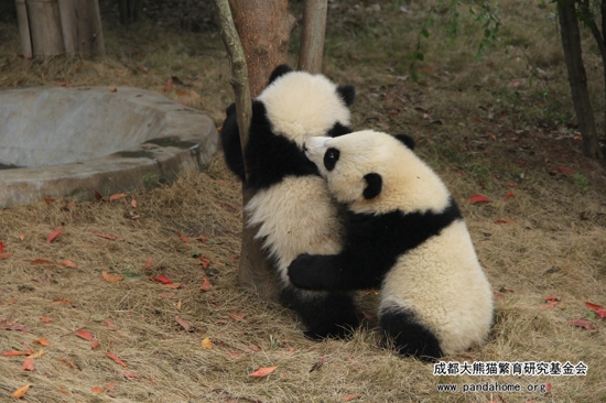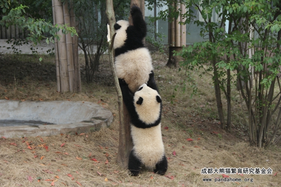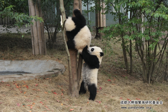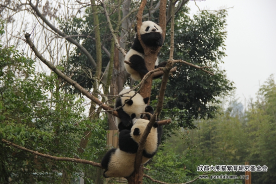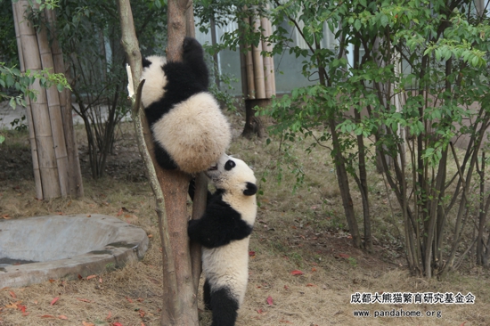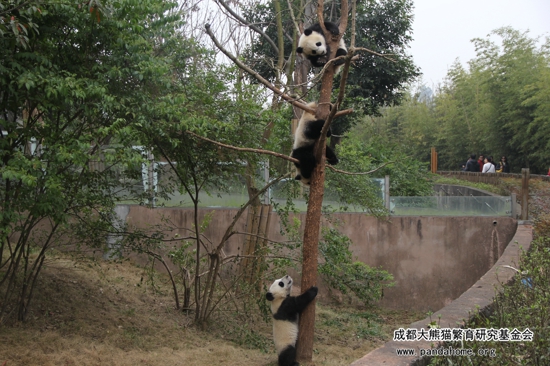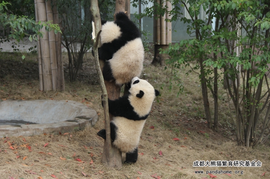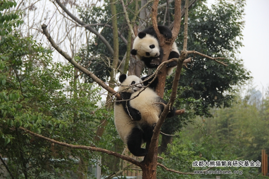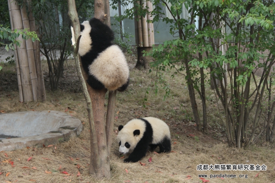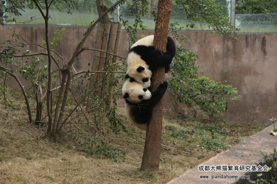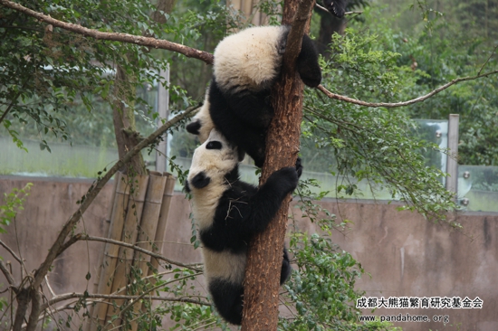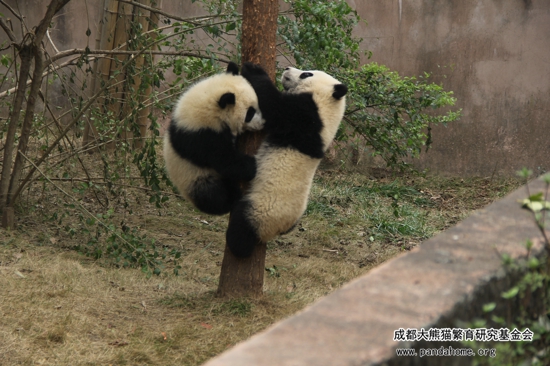 春天到了,2014级的熊猫幼仔们已经年满八个月了,小团子们不仅非常招人喜欢,而且有些还成为了十足的“好逗”分子。为什么这么称呼呢?因为这些小捣蛋鬼不仅调皮好动,而且瞅准机会就爱找其它团子的茬,总是逗“熊”生气。