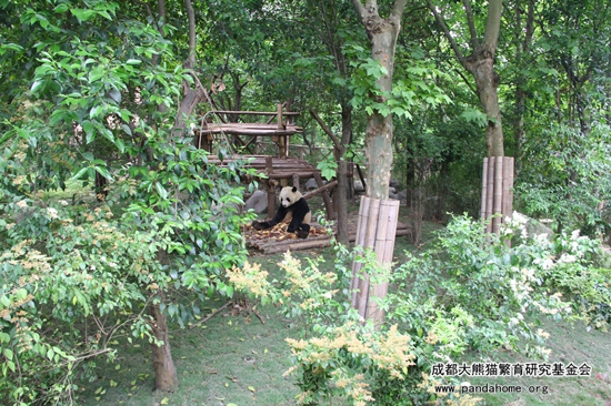 “永浜”自从疗养以来就一直住在熊猫基地大熊猫1号别墅。这里一共有4个室外运动场,由于植被茂盛,空气凉爽,所以当其它别墅内的熊猫因为怕热回空调房的时候,1号别墅的熊猫们还可以在室外继续溜达。
