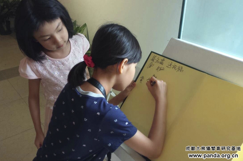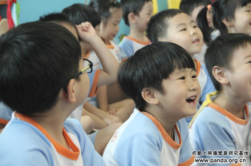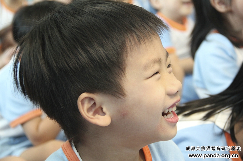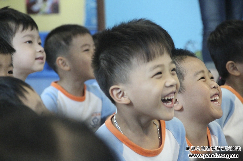 视频播放完毕后,教员问小朋友有没有什么祝福想送给“开开”、“心心”,有个小朋友受视频启发,说想给“开开”“心心”送滑梯。趁着大家高昂的兴致,老师向小朋友们介绍了观看大熊猫时应注意的事项:保持安静、不使用闪光灯……