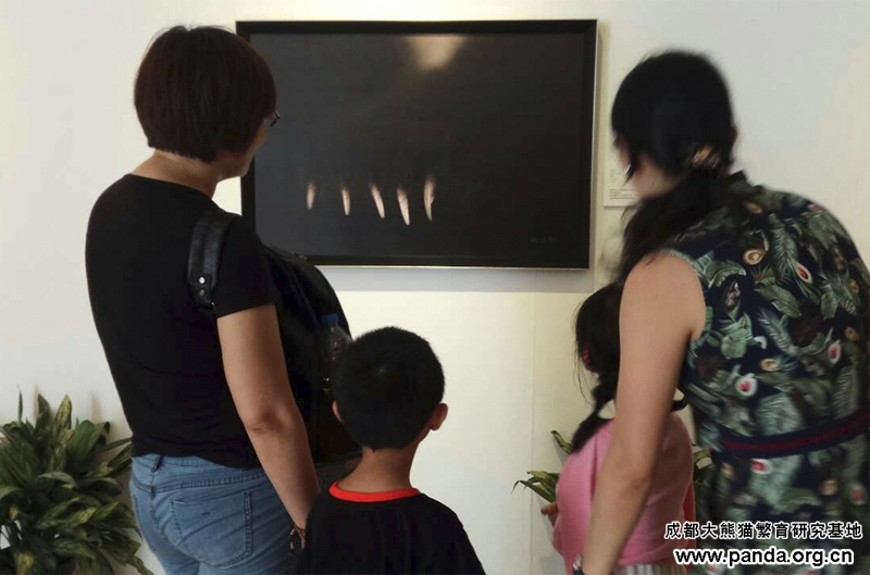 一位前来参观的澳门市民,看到了张志和博士的大熊猫写真旁的介绍牌,认真又有些调皮地念起绕口令:“茜茜的妈妈是庆贺,庆贺的妈妈是庆庆,茜茜的外婆是庆庆,庆庆的孙女是茜茜--”,那入神的模样不仅让人忍俊不止,又让人心生知己之情。面对如此真实而有富有艺术张力的作品,任谁都会被深深吸引的。