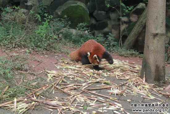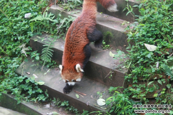 炎炎夏日,大熊猫都躲进房间里吹空调了,小熊猫们却依然活跃在运动场。您瞧,这只小熊猫正轻松自如的迈着矫健的步伐上下楼梯。