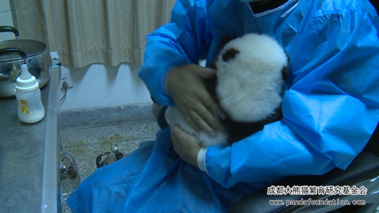 人工饲养大熊猫并非易事,照顾如此柔弱的小生命,不仅需要饲养员们熟练模拟熊猫妈妈对幼崽的育儿技巧,更需要他们像熊猫妈妈般无微不至的感情投入,就是有这些奶爸奶妈们对大熊猫幼崽的精心呵护,大熊猫宝宝才能更健康地成长。