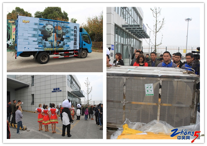 11月4日早点五点多,常州淹城野生动物世界的工作人员已经在成都双流机场准备登机了。两只大熊猫进入钢骨架和铁丝网双层结构的运输笼,乘坐专机,在上午十点半左右到达南京禄口机场。