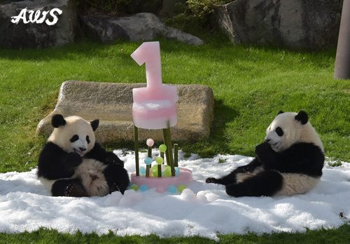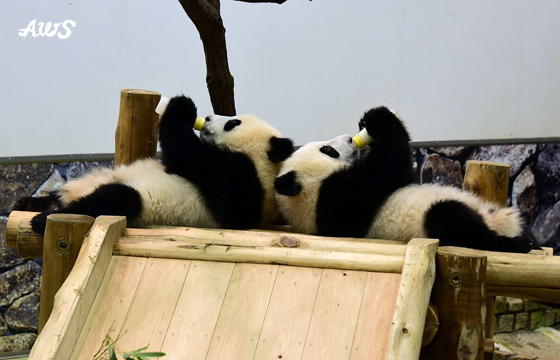 “樱浜”、“桃浜”:“我们长大独立啦!听奶爸奶妈说我们已经进入了断奶期,试着让我们开始独立。于是我们和‘良浜’妈妈分开搬进了新的室内运动场。虽然跟‘良浜’妈妈分开我们很难过,但是我们更加为能踏出成长中关键的一大步而感到高兴。我们俩很快适应了新的环境我们在新天地里奔跑、玩耍,每天都过得非常开心。”