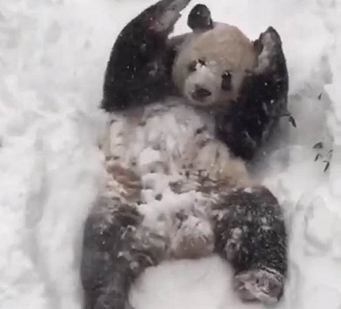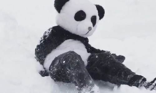 “熊猫人”神同步的玩雪