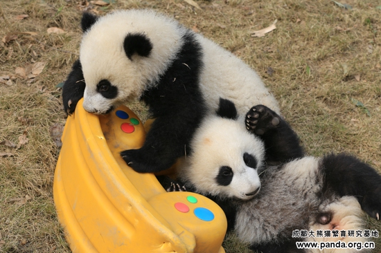 由联合国开发计划署(UNDP)、成都大熊猫繁育研究基地、腾讯网、全球大熊猫家园PANDAPIA共同策划、主办,保护国际(CI)、野生救援组 织(WILDAID)、大自然保护协会(TNC)协办的“‘双胞胎大发现’全球大熊猫保育推广活动”持续进行,2月6日系列活动活动第5项——“团子大拜 年”正式启动,15级的小团子们集体出镜,以视频的形式给广大人民群众拜了个早年。同时,备受广大熊猫粉丝关注的15级“小滚滚”晶晶双胞胎幼仔、妮妮双 胞胎幼仔、思缘双胞胎幼仔、小丫头双胞胎幼仔、萌萌幼仔征名也有了结果——2016年2月6日成都大熊猫基地官方网站及@成都大熊猫繁育研究基地官方微博 平台正式公布了9 只15级“小滚滚”的名字,终于告别乳名。