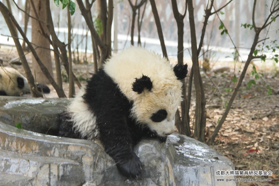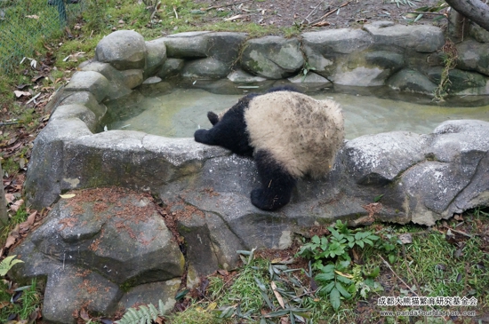 大熊猫生性喜水,炎炎夏日,它们喜欢泡在水里消暑纳凉,而在寒冷的冬日,由于它们有着厚厚的皮毛和脂肪,也同样可以看到它们“泡澡”的身影呢!