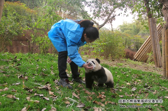 乍一看标题,读者们一定会被吓一跳吧!“熊猫园子里怎么会有娃娃鱼呢?是不是搞错啦?!”这其中的缘由,要从上月的一条新闻说起。2016年2月6日,成都大熊猫繁育研究基地在官方网站和微博平台正式发布了2015年9只新生熊猫宝宝的名字,小团子们终于告别了乳名,正式拥有了属于自己的名字。其中,大熊猫妈妈“妮妮”的一对雌性双胞胎宝宝分别被命名为“大妮”、“小妮”。而我们今天的主角“娃娃鱼”,就是这对双胞胎姐妹花中的大仔“大妮”。说到这里,大家一定知道了熊猫园子里为什么会有娃娃鱼了吧?那是因为“大妮”与“大鲵”的读音相同,所以网友们逗趣地将“大妮”唤作“娃娃鱼”。