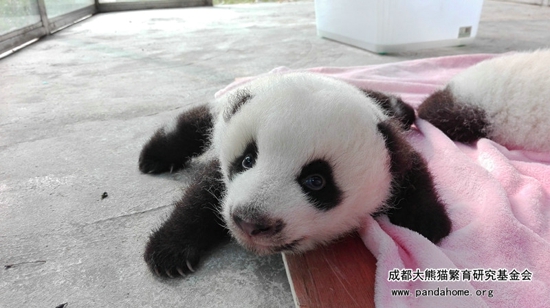 三月龄的“大妮”虽然还不会走路,但表情看起来很机警,眼神也很灵动,天生有镜头感。