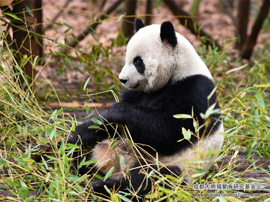 回国后的“二爷”大多数时候都在成年馆,每天出来吃竹、溜达、泡澡和追孔雀,小日子倒也过得惬意。最近,“二爷”在平时的娱乐项目中又新增了一项特殊技能——抱头连环翻滚。
