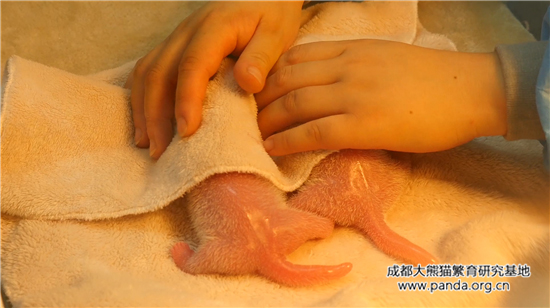 恰逢七夕生产 大熊猫“成功”宝宝龙凤呈祥