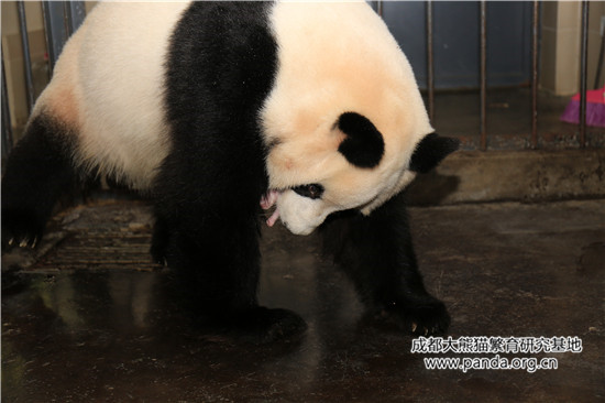 2016年8月19日,成都大熊猫繁育研究基地大熊猫“成绩”成功产下一雄性大熊猫幼仔,初生体重205克。目前母子平安。