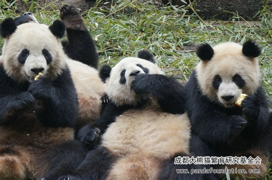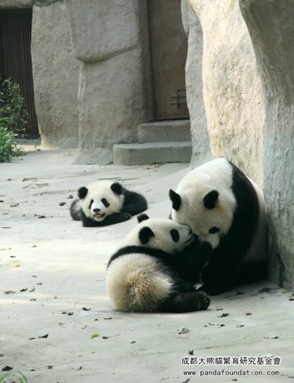 时光飞逝,转眼间“淼淼”已是3岁的大姑娘了,和小伙伴们一起在幼年别墅度过了一段无忧无虑的日子后,它们集体告别了谭奶爸,升入了大熊猫二号别墅。在二号别墅生活度过短暂的几个月后,“淼淼”同哥哥“奥莉奥”、姐姐“园润”一起,先后送走了外出“打工”的双胞胎兄弟“成双”“成对”和青梅竹马“小乔”“思一”,接着搬到了都江堰大熊猫野放研究中心(简称“熊猫谷”)居住。
