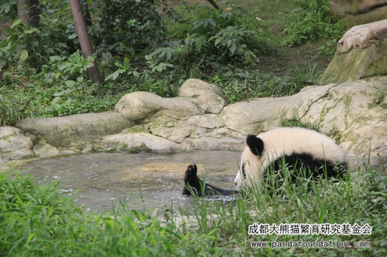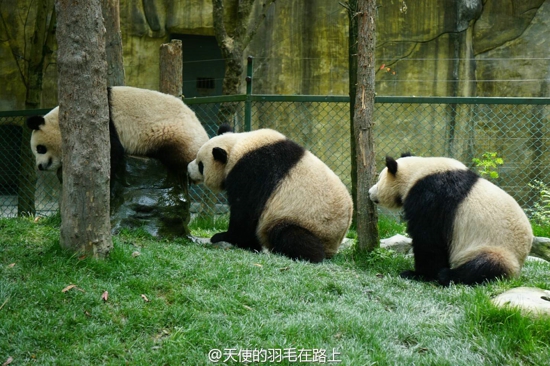 在熊猫谷,憨厚的哥哥“奥莉奥”和稳重的姐姐“园润”依然“惯”着“淼淼”,对于“小公主”的任性和撒娇十分忍让。夏日炎热,“淼淼”在每天仅有的几小时室外活动时间里为了乘凉,抱住水盆不放,变身“水霸”,害苦了哥哥和姐姐。好脾气的“奥莉奥”和“园润”拿“淼淼”没辙,想喝水也只好乖乖排队等候在水盆旁,待“淼淼”凉快够了才能喝上水。