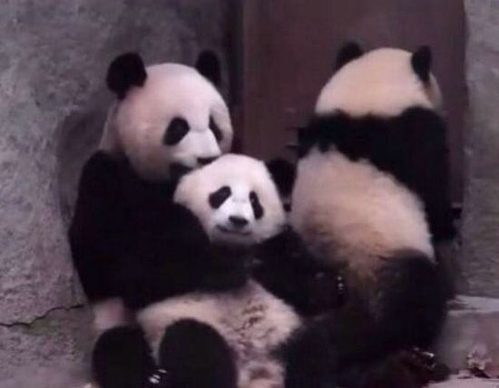 “莉莉”十分疼爱“淼淼”(图片来自微博网友@menglian_sky安好的iPanda熊猫频道截图)