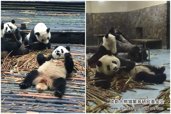 从太阳产房“熊猫幼稚园”毕业后,“莉莉”妈妈带着“淼淼”与其他小伙伴一起“升班”来到了大熊猫幼年别墅。在这里,已经能吃各种竹子的“淼淼”和小伙伴们常常围坐在“莉莉”妈妈身边,一起热闹地“进餐”。