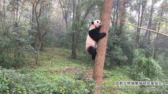 “钓猫”不仅对游客来说颇具观赏性,对大熊猫来说锻炼也挺有成效的,看看下面的“功仔”,作为功夫熊猫的原型,就像自带轻功,“钓猫”时走两步上个树那是轻轻松松、简简单单。