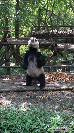 颜值颇高的“迎迎”是一只注意形象的熊猫,每次吃完东西都会仔细舔手