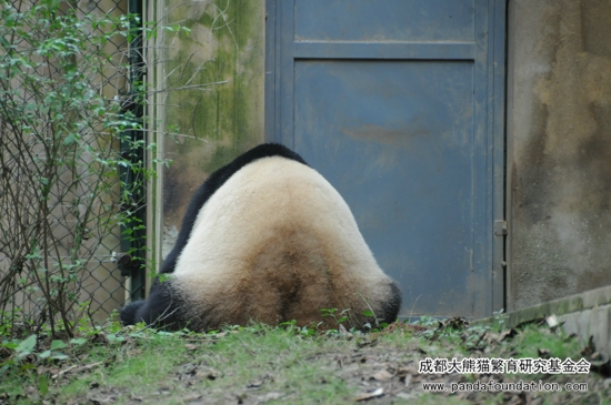传说中“勇勇”也是个“钓猫”时脚下工夫了得的帅熊,但是笔者看了很多次都只看到了“勇大爷”不屑锻炼的姿态,这可能是它作为一只正当壮年的雄性熊猫的骄傲吧。