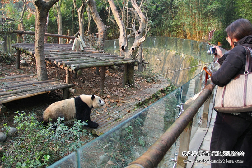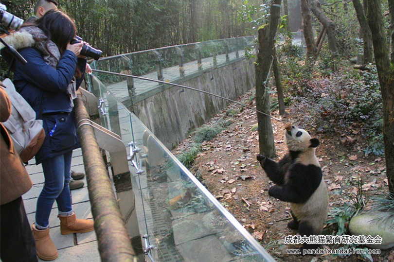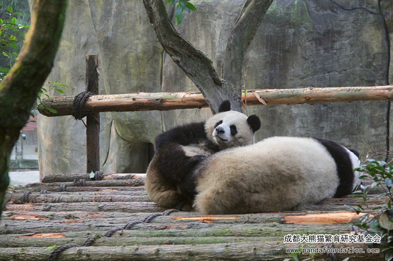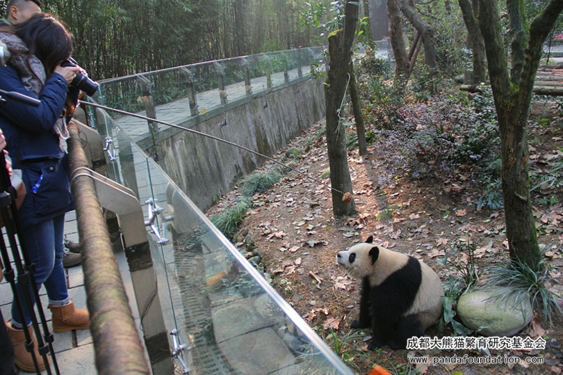 在都江堰熊猫谷的日子里,“奥淼润”最活跃的时间,那当属奶爸“钓猫儿”的时候了!还记得2017年12月底的一天,在“奥淼润”的园区活动场内,“淼淼”、“园润”俩小姐妹在木架床上酣睡,“奥莉奥”则肩负起小哥哥的重任,努力巡场“放哨”。场外,一大早辛苦赶来的粉丝们赶紧把各自大小“炮筒”架设好,找到最佳机位,苦苦守候可能随时会到来的精彩瞬间。