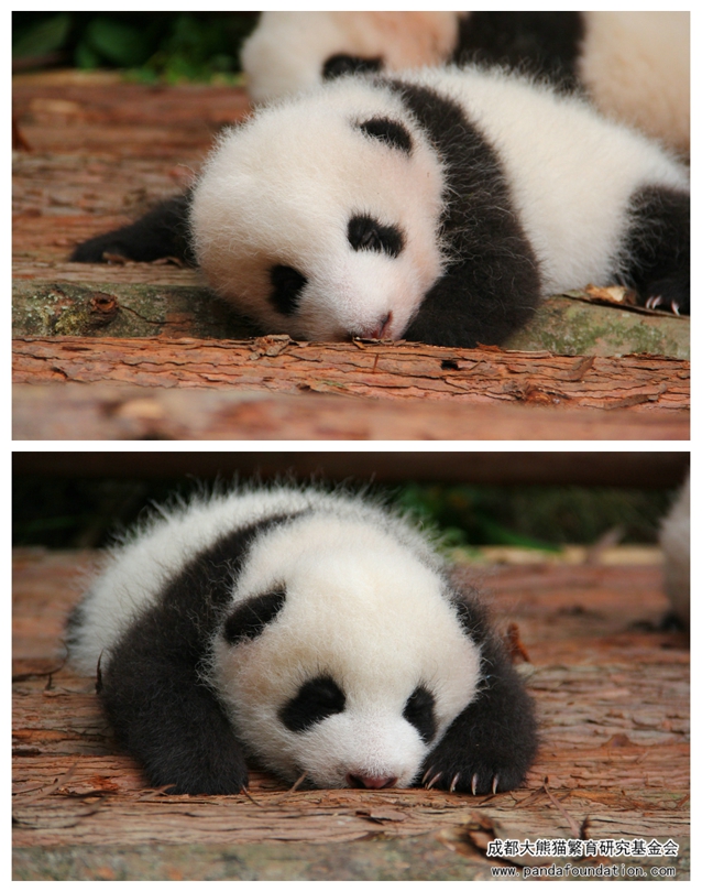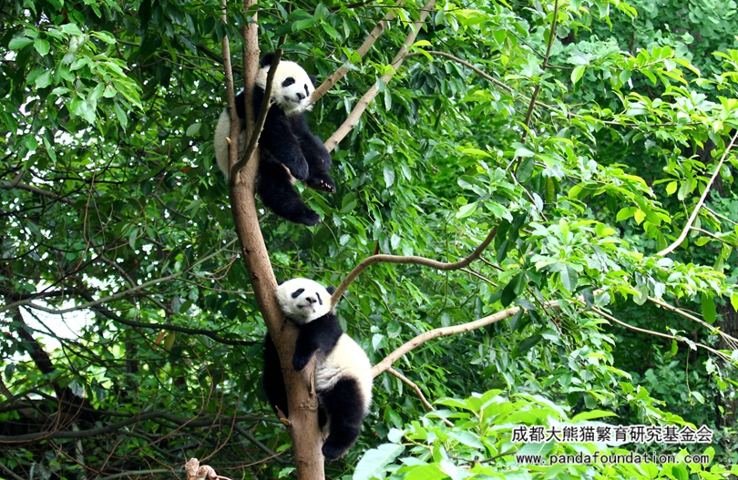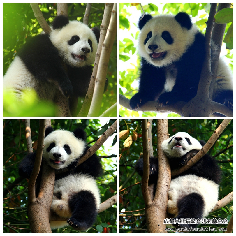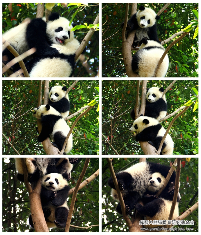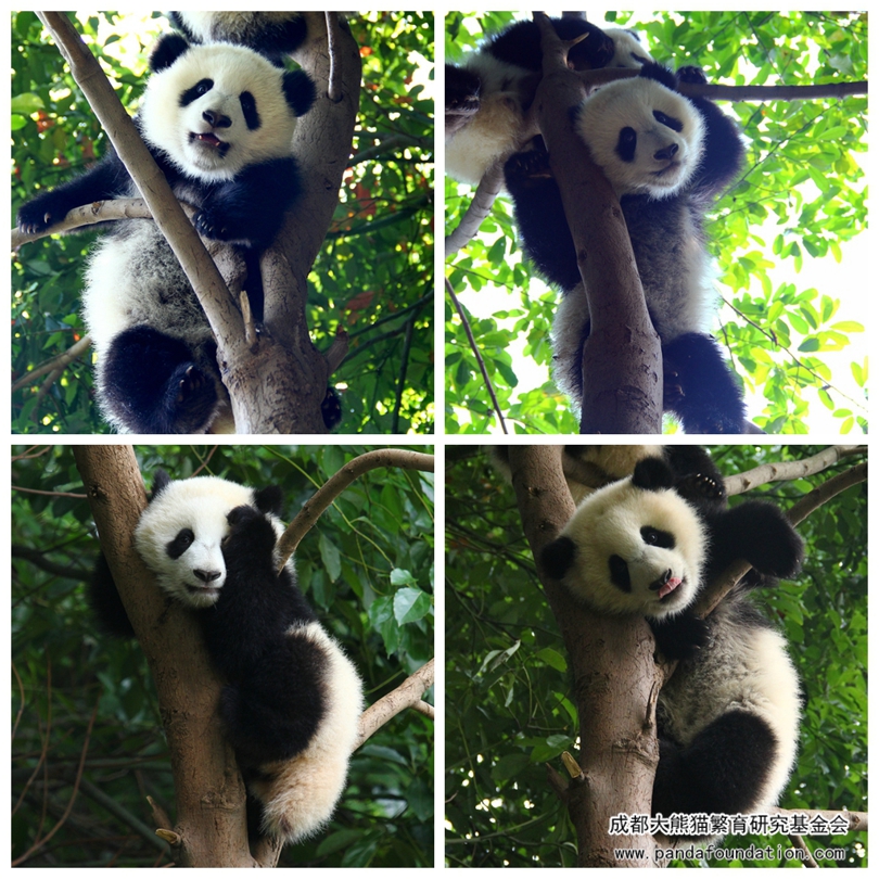 最近,在成都大熊猫繁育研究基地的月亮产房出现了一道亮丽的风景线,每天都会吸引大量的游客驻足、凝望、拍照,久久不愿离去,还时时伴随着阵阵惊呼:“哇!好可爱呀!”、“那是真的还是假的啊?!”、“它们怎么爬得那么高呀?”……到底是什么如此吸引大家的目光呢?笔者走近一看,噢~原来是整天挂在树上睡觉的熊猫宝宝青青和小馨呀!
