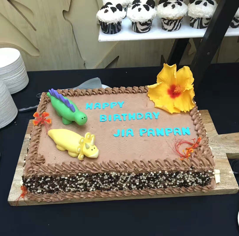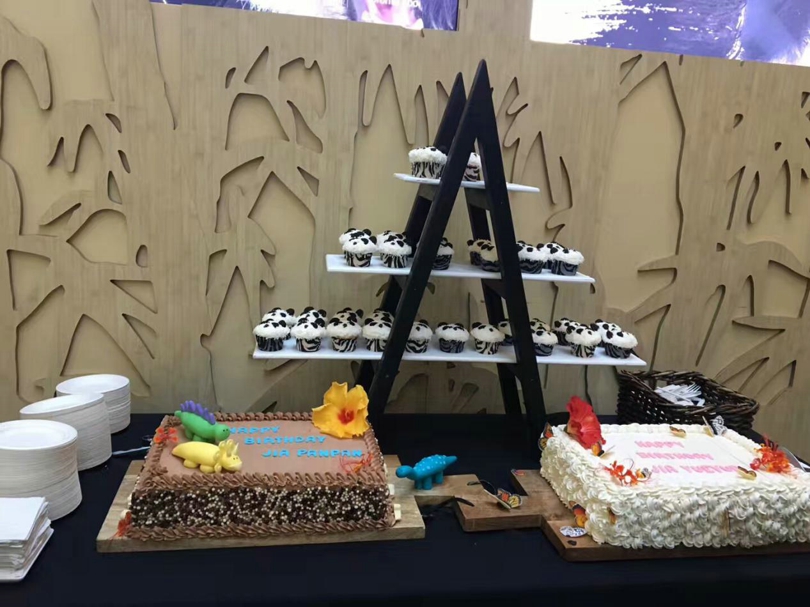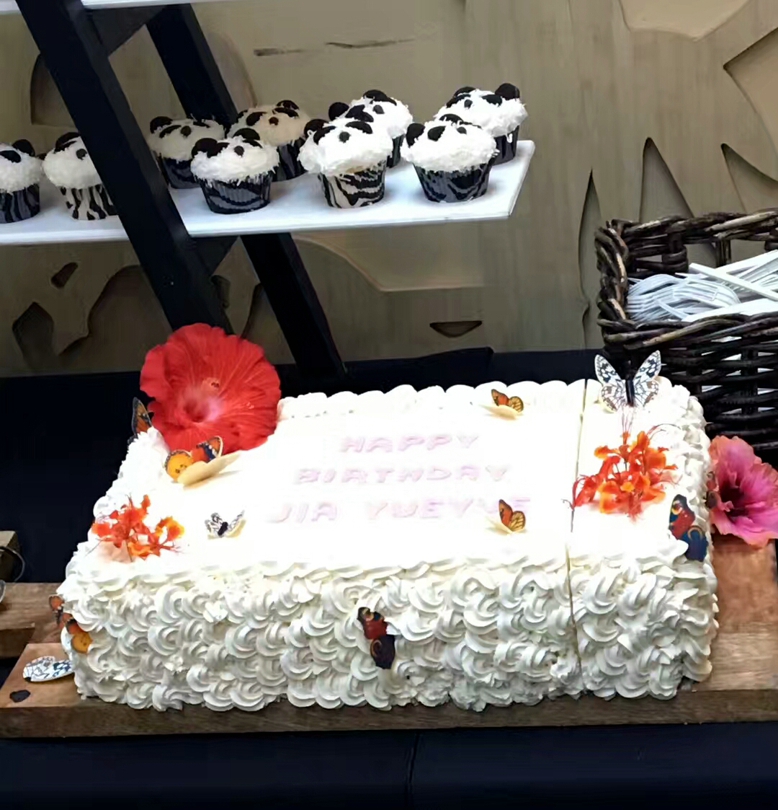 现场五彩缤纷的冰蛋糕还别具特色地用了蝴蝶状的熊猫饼干做装饰,真的超级漂亮!